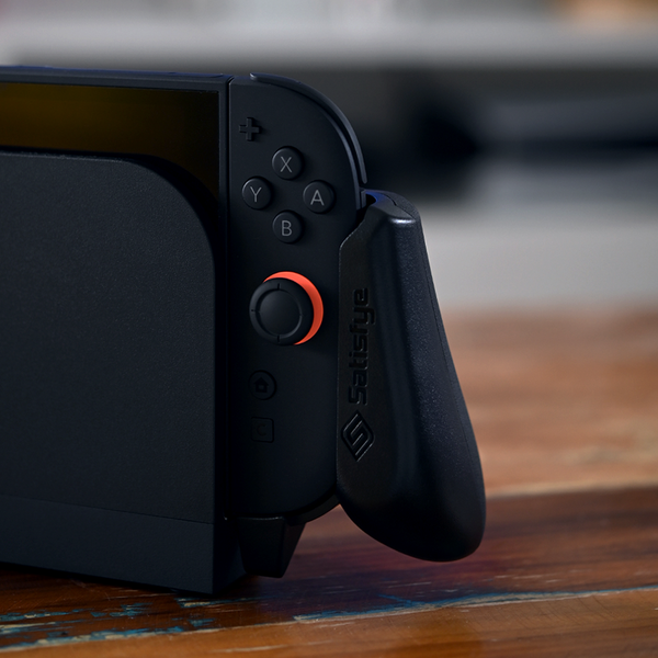 Offset grips mirror natural hand alignment — with rubberized texture for better breathability and comfort on your controllers.